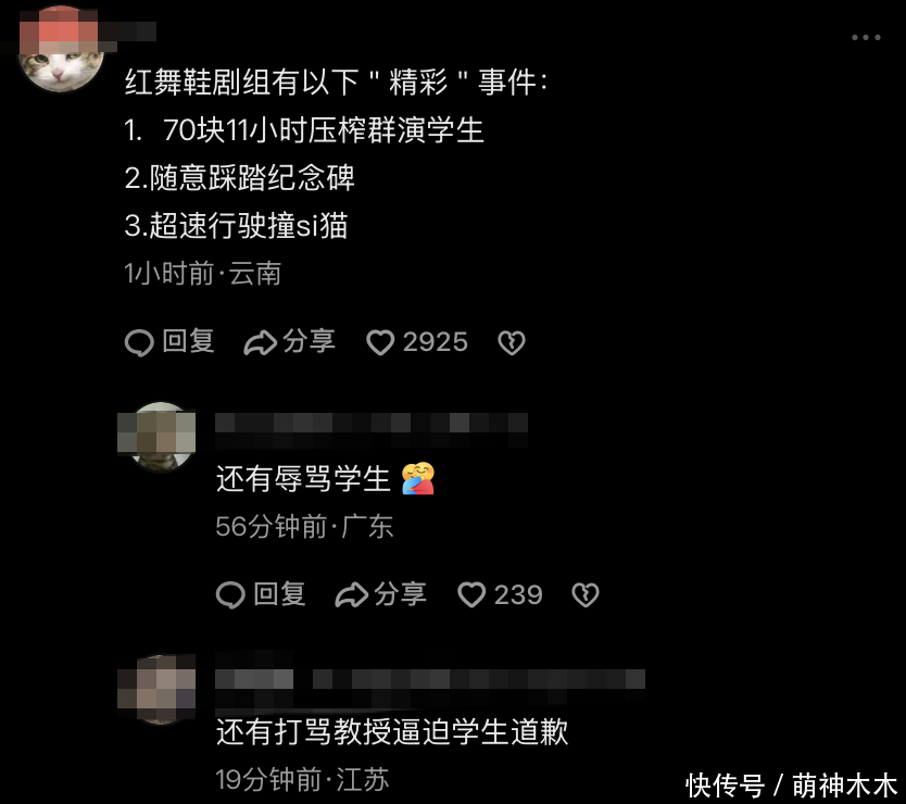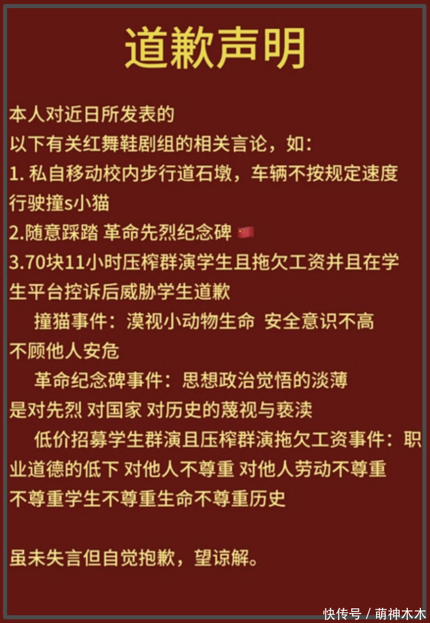 《红舞鞋》剧组自开机后一直惹争议金御优配,不仅压榨大学生群演,而且在校内步行道超速开车撞死小猫,剧组发布道歉声明后,本以为会虚心接受网友批评,但没想到剧组依旧很霸道,不回应疑问暗地里持续捂嘴向学生施压,而与剧组有关的人员评论区已彻底沦陷。