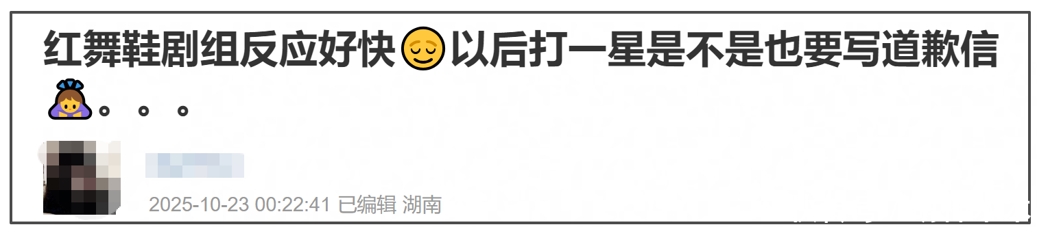 除了删评,剧组疑似暗地里持续向驿站负责人施压,原定好当地的新闻媒体要采访负责人,但是扭头报社的实习生就告诉他,有人给报社施压,不准来采访金御优配,也不准发任何有关《红舞鞋》剧组的报道。