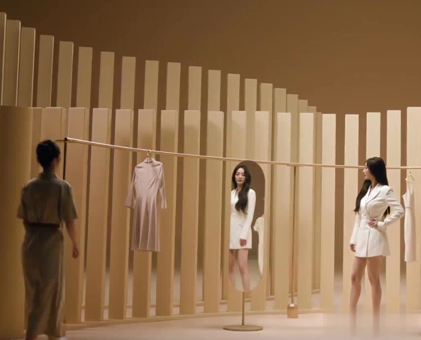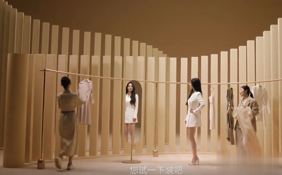 一旁的工作人员,给她拿了两三套衣服,她看了一眼之后,摆了摆手表示都不搭。